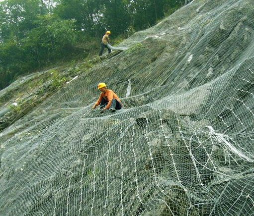攔截物特征:若有大塊巖石或堆積物使系統(tǒng)處于緊張狀態(tài),系統(tǒng)的柔性將會(huì)降低,防護(hù)能力也相應(yīng)降低,在攔截下一次落石時(shí)不能得到充分保證,應(yīng)予以清除。此外,若有巖塊、碎石、土和落葉等大量堆積物存在,它一方面將使系統(tǒng)處于張緊狀態(tài)而降低防護(hù)能力,同時(shí)可能形成彈性平臺(tái)而降低系統(tǒng)的有效高度,亦應(yīng)考慮清除,通常,當(dāng)這種堆積高度超過(guò)系統(tǒng)設(shè)計(jì)高度的1/4時(shí),則需要予以清除。對(duì)近水平安裝的層頂式結(jié)構(gòu)系統(tǒng),需要特別注意上述攔截物的清除,因?yàn)榇藭r(shí)的攔截物將以重力形式直接作用在網(wǎng)上,且容易給下部的行車、行人造成一種不安全的恐懼感。