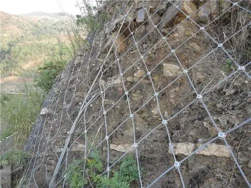 以鍍鋅高強(qiáng)度鋼絲繩為主要材料的的柔性防護(hù)網(wǎng)具有高韌性、高防護(hù)強(qiáng)度、易鋪展性等優(yōu)點(diǎn)。主動防護(hù)系統(tǒng)通過多次邊坡防護(hù)工程的現(xiàn)場試驗(yàn)和對比,具有適應(yīng)任何坡面地形、安裝程序標(biāo)準(zhǔn)化、系統(tǒng)化等優(yōu)點(diǎn)。
